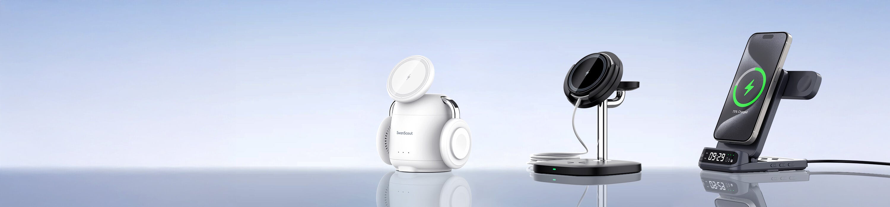 تستخدم شواحن MagSafe اللاسلكية من SwanScout محاذاة مغناطيسية دقيقة التصميم لضمان تثبيت ثابت ومستقر لأجهزة iPhone المتوافقة. تحافظ قوة المجال المغناطيسي المُحسّنة على اتصال آمن طوال عملية الشحن، مما يقلل من خطر عدم المحاذاة أو الانقطاع. يتيح ذلك وضع الجهاز رأسيًا وأفقيًا دون المساس بكفاءة الشحن أو استقرار الاتصال.