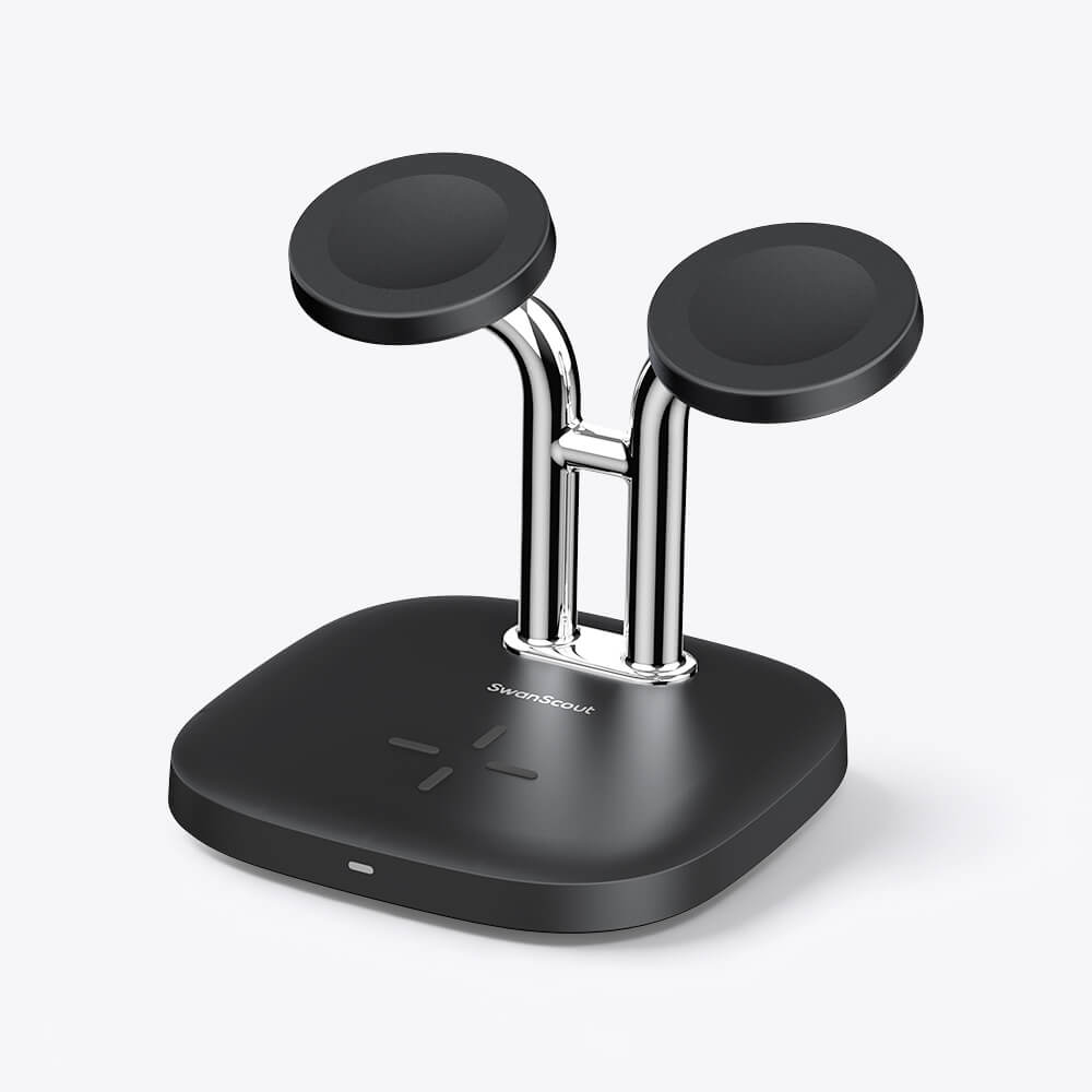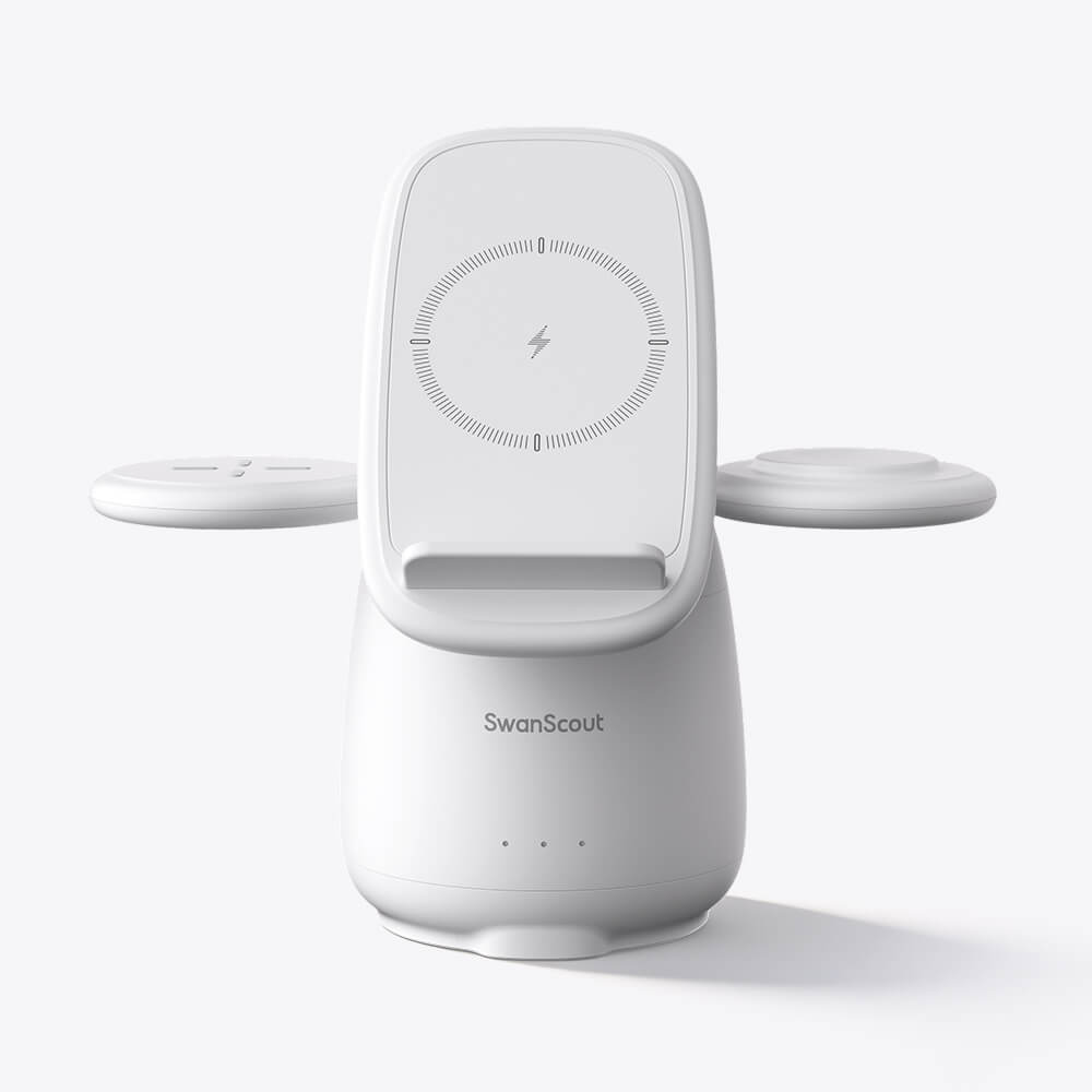 في حالة الشحن غير المنتظم أو البطيء، استخدم محول USB-C بقوة ٢٥ واط فأكثر (يُباع منفصلًا) لضمان طاقة كافية لمحطة SwanScout 3 في 1. أعطِ الأولوية للأجهزة عالية الطاقة (مثل iPhone) في منطقة الشحن الرئيسية، وتأكد من محاذاة الجهاز بدقة مع سطح الشحن لتحقيق أقصى كفاءة.