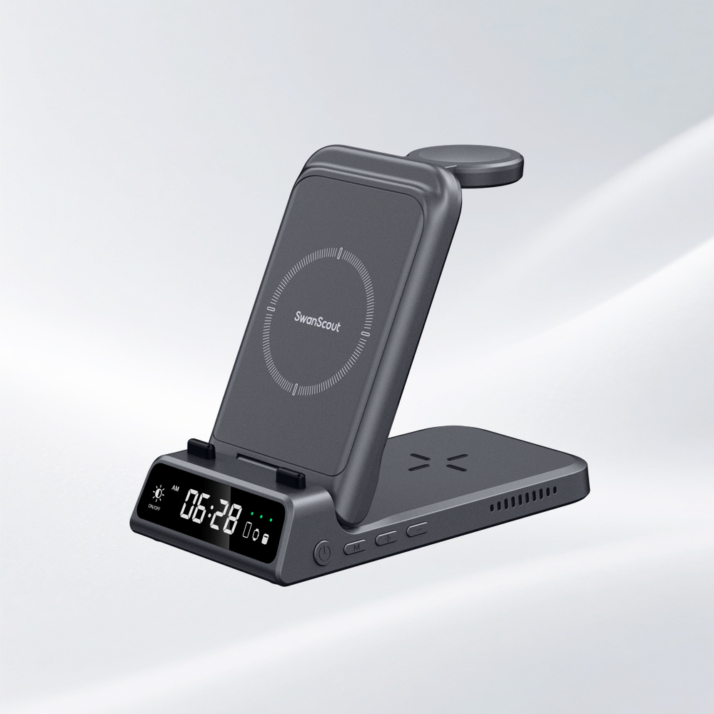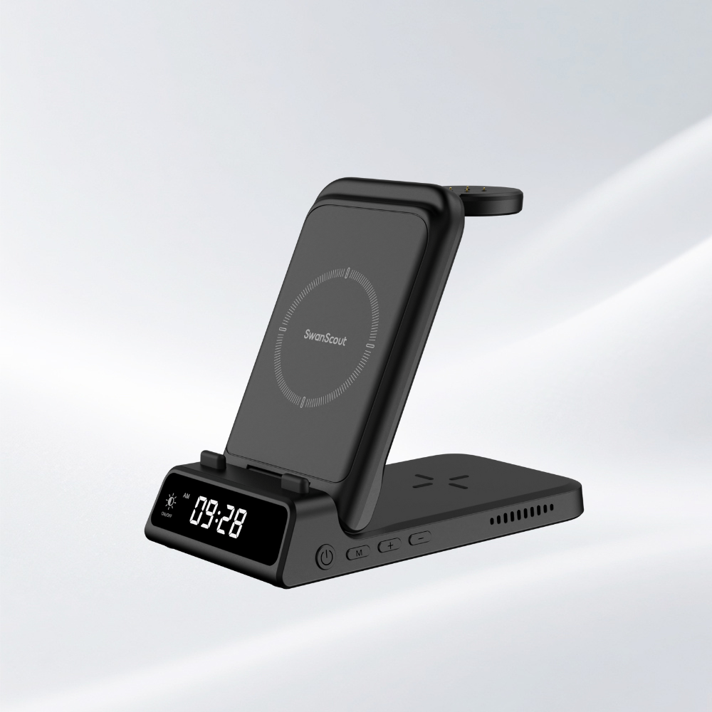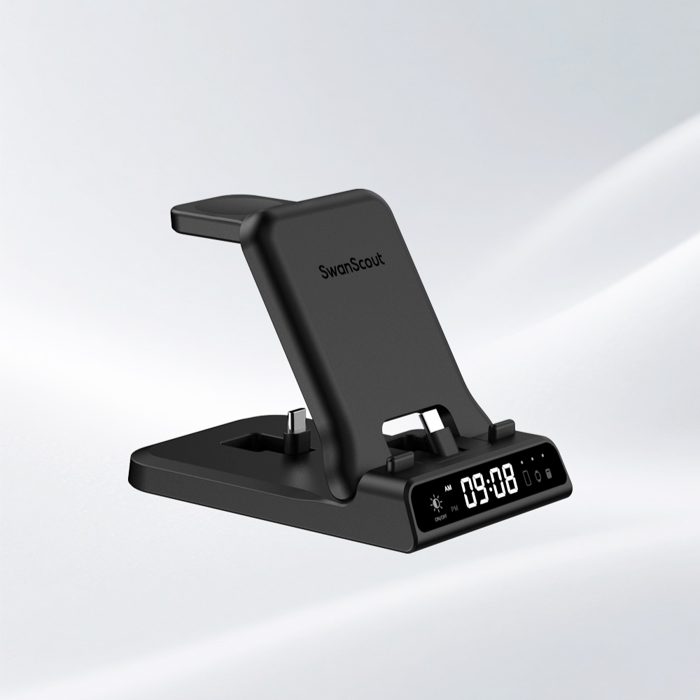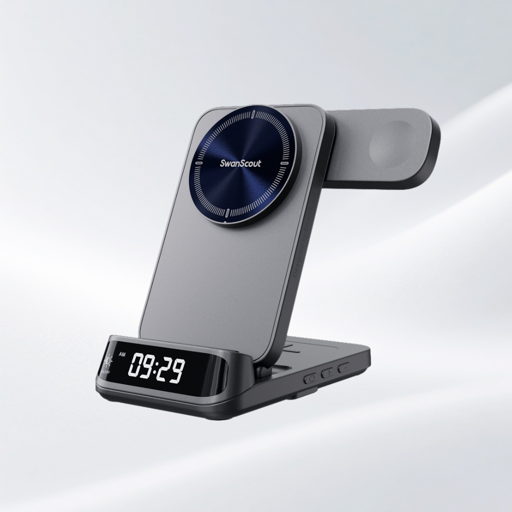 Les chargeurs sans fil SwanScout allient une charge magnétique rapide à une horloge numérique claire dans un seul appareil élégant. Que ce soit à votre bureau, à votre chevet ou dans votre espace d'étude, vous pouvez recharger votre téléphone et respecter vos horaires, tout en conservant un espace propre et organisé.