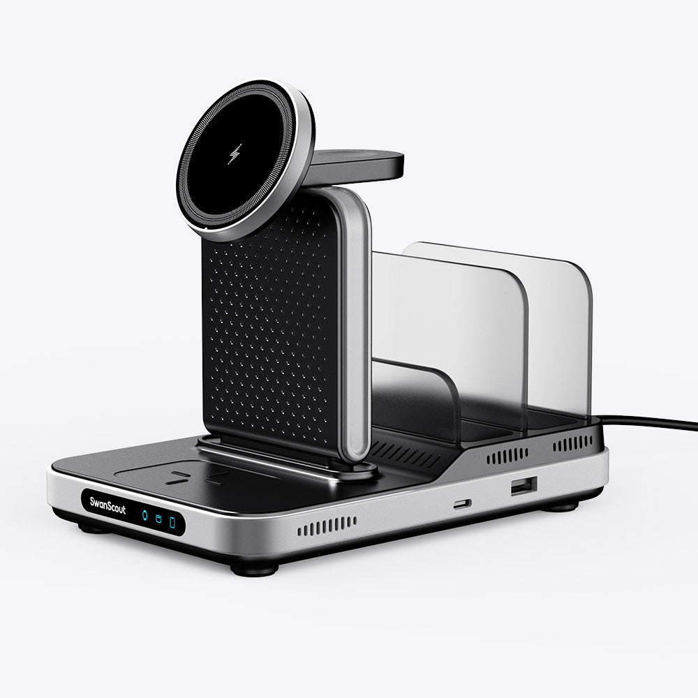 Oszczędzasz 21% SwanScout 304M is a sleek iPhone charging station that simplifies power management for daily Apple device users.With iPhone wireless charger fast charging, the SwanScout 304M delivers quick, reliable energy without overheating.