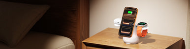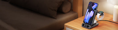 「よくできていて、電話、イヤホン、時計を同時に充電できる。 時計機能が付いているので、ベッドサイドのテーブルに最適です。」