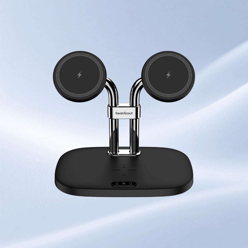 SwanScout 304M is a sleek iPhone charging station that simplifies power management for daily Apple device users.With iPhone wireless charger fast charging, the SwanScout 304M delivers quick, reliable energy without overheating.