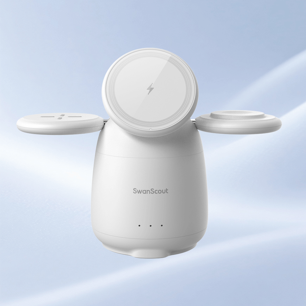 SwanScout 301M is a 3-in-1 foldable magnetic power bank, designed for seamless charging with MagSafe-compatible devices.The SwanScout 301M is an innovative apple watch power bank, offering wireless charging for your watch, phone, and earbuds.
