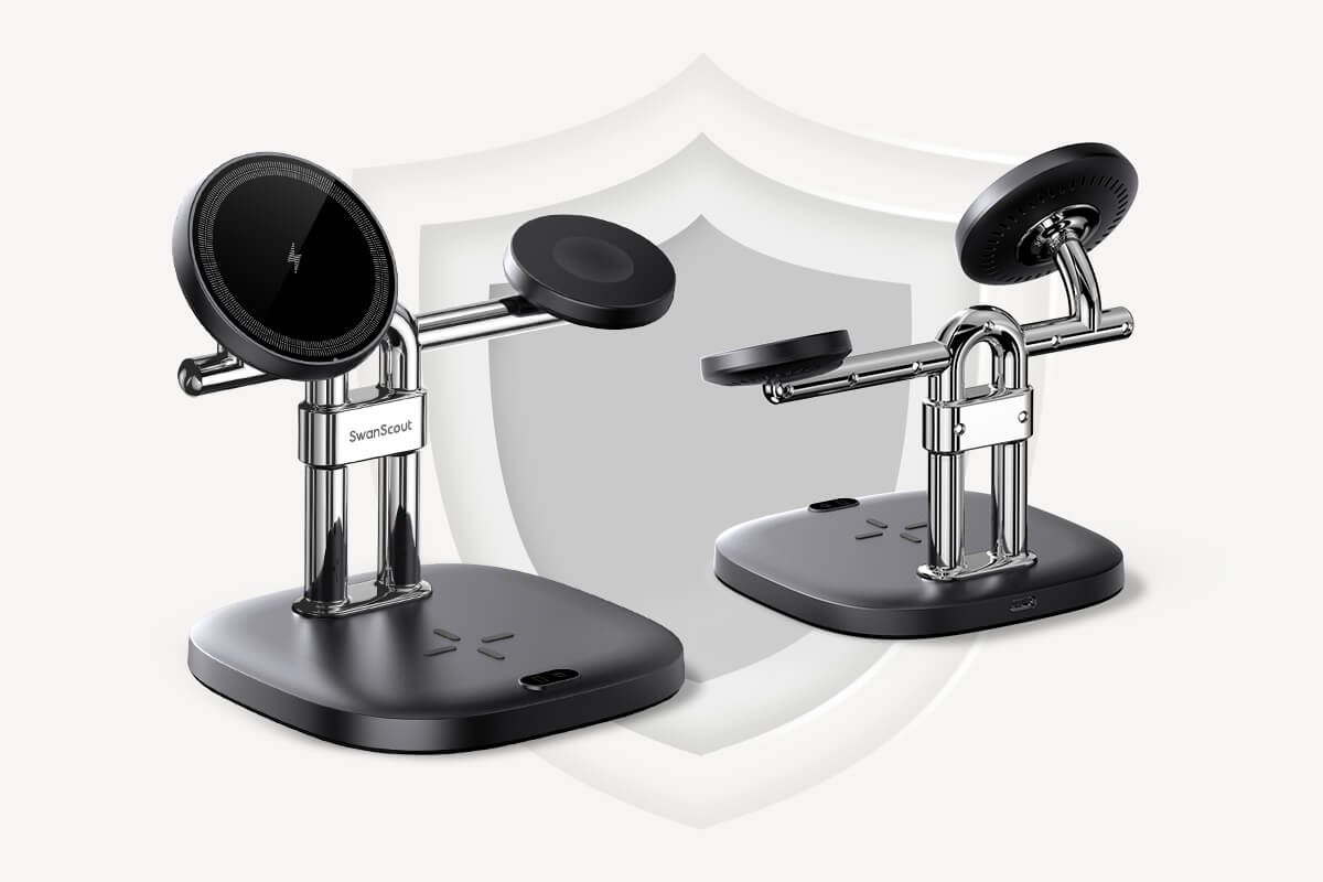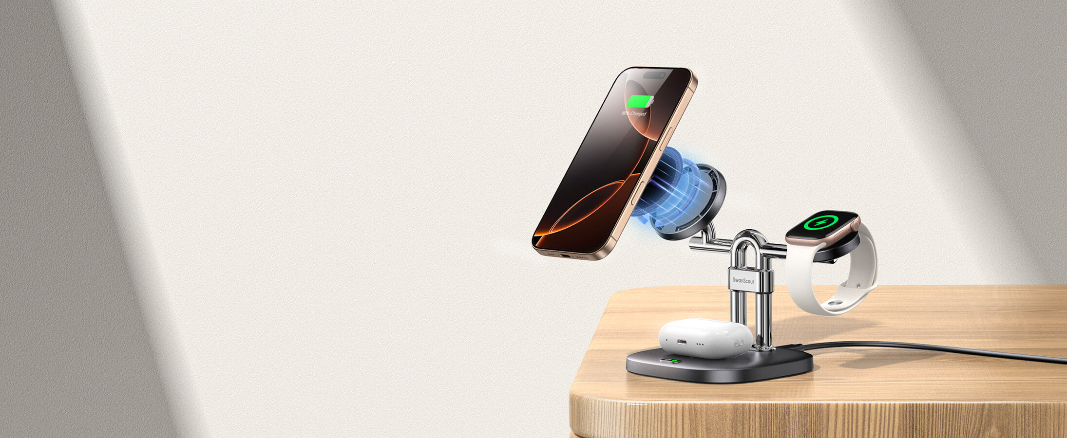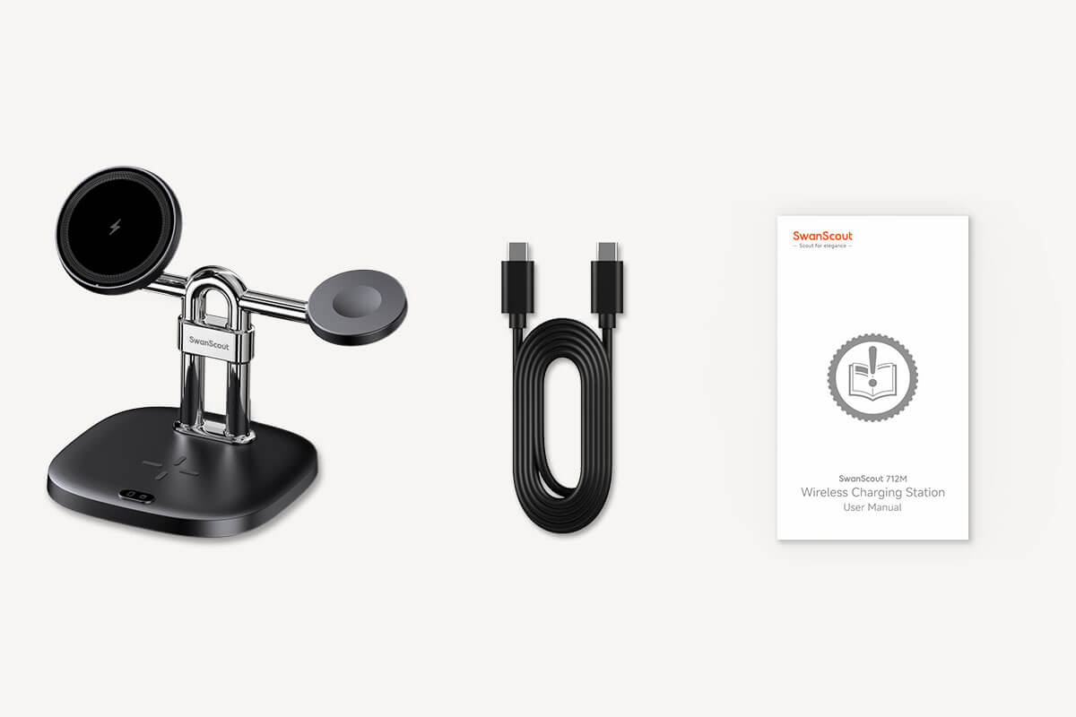SwanScout 712M – Stație de Încărcare Wireless Magnetică 3 în 1 pentru Apple