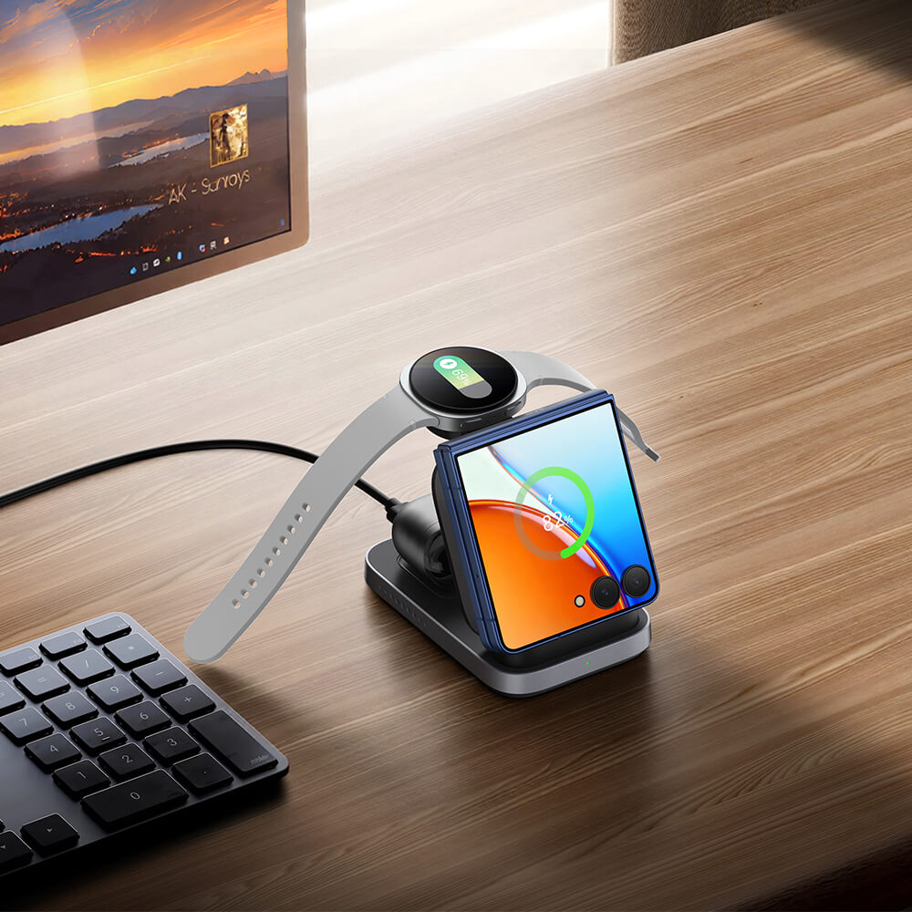 SwanScout 713F – 3-i-1 trådlös laddare för Samsung Z Flip 7