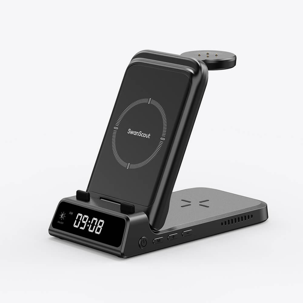 The SwanScout 504F is a versatile Samsung charging station that powers your phone, watch, and earbuds all at once.Designed for daily use, the SwanScout 504F works as a stable wireless charger for Samsung, keeping your setup tidy and wireless.