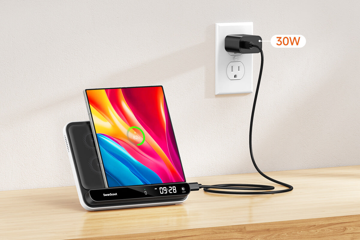 Built for Samsung users, the SwanScout 504F functions as a Samsung Galaxy charging station, unifying charging into one base. The SwanScout 504F supports wireless charging for the Google Pixel 9 Pro Fold, making it ideal for mixed-device households.