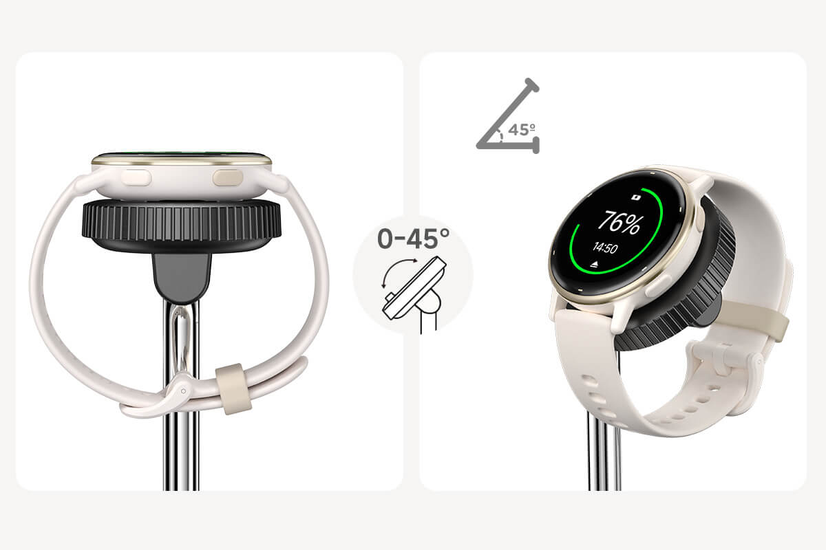 • 可调节倾斜角度范围从 0° 到 45°,充电时可实现最佳观表视角。