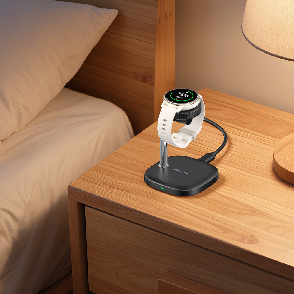 • 兼容多款 Garmin 手表;节省空间的垂直设计适用于家庭或办公室环境。