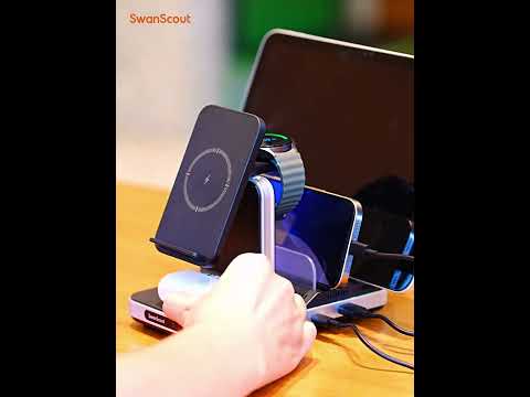 Designed as a Samsung charging station, the SwanScout 901S charges Galaxy phones, watches, and earbuds together.